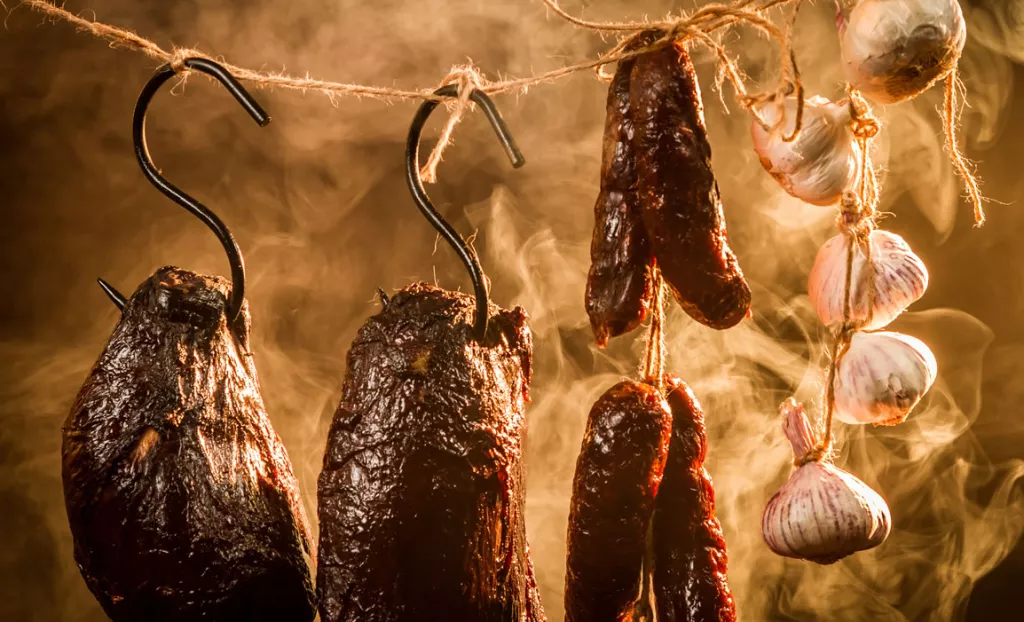 Chorizo: Jest to hiszpańska kiełbasa o charakterystycznym czerwonym kolorze, wędzona z pikantnymi przyprawami, takimi jak papryka i czosnek.