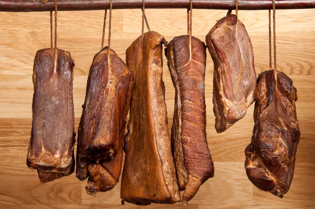 Szynka: To wędzony i gotowany kawał mięsa, zazwyczaj wieprzowego, ale może być również z kurczaka lub indyka. Szynki mogą być wędzone na gorąco lub na zimno i są często używane jako składnik kanapek, sałatek i głównych dań.