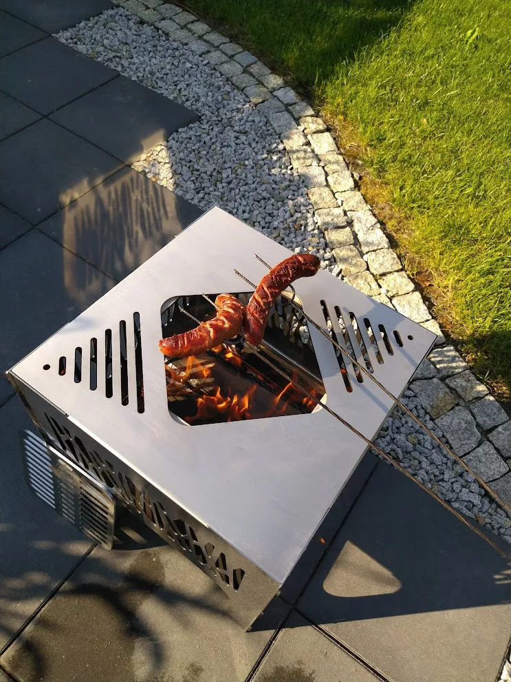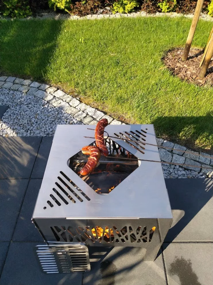 • Estetyczny design: Jego nowoczesny design w połączeniu z funkcjonalnością sprawia, że palenisko staje się również eleganckim elementem dekoracyjnym w Twoim ogrodzie.